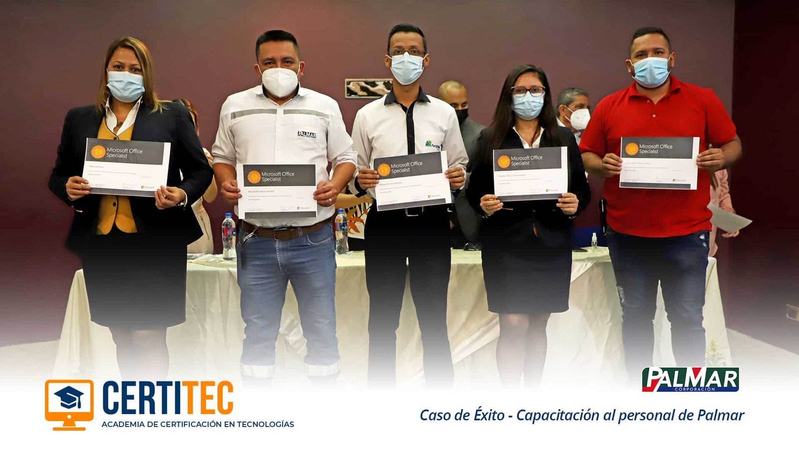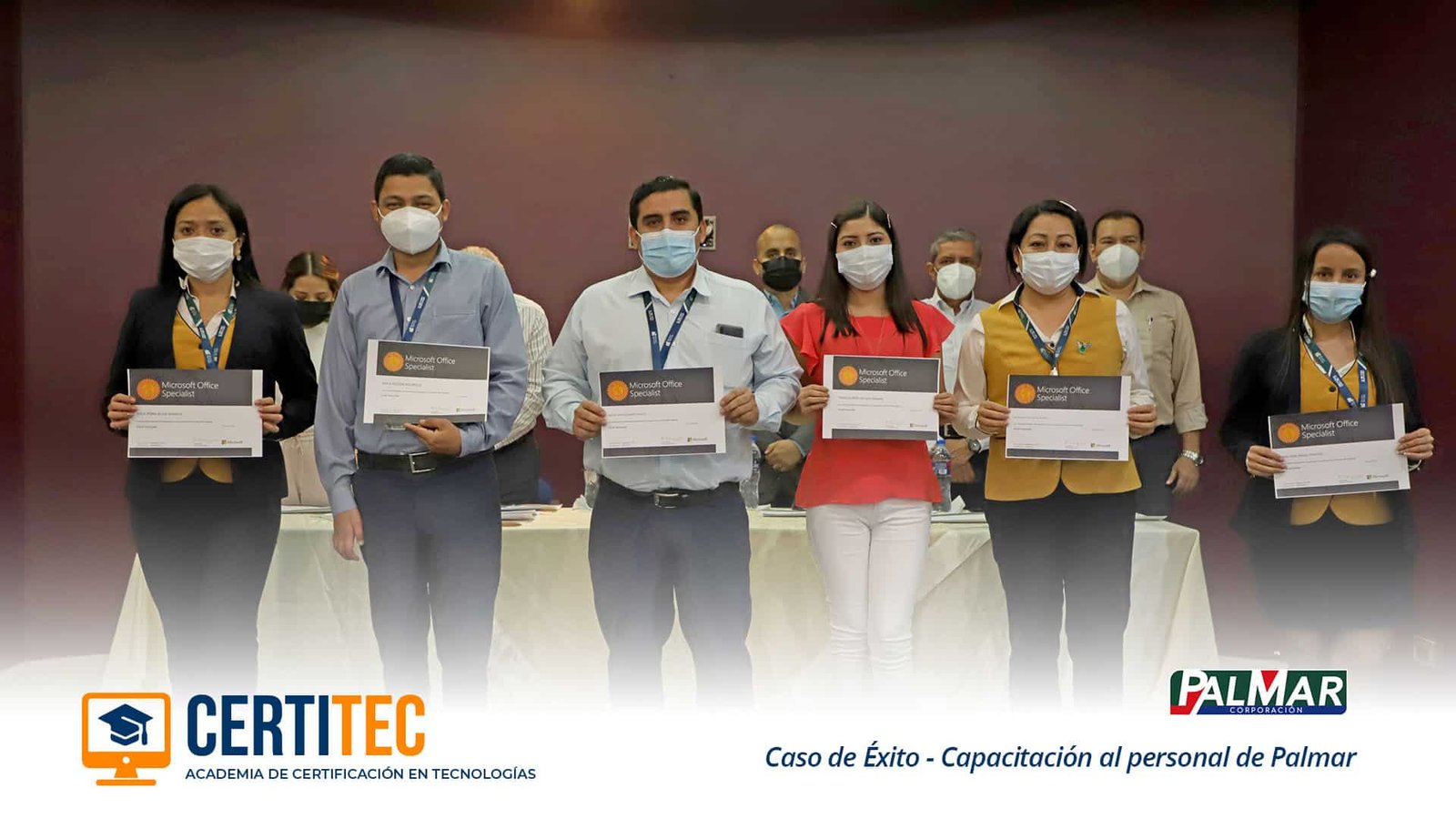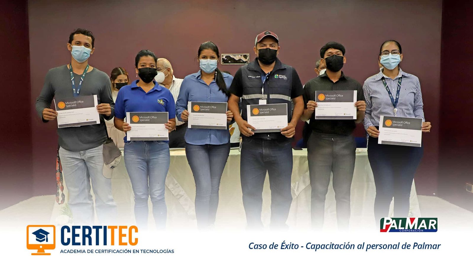 Corporación Palmar, una reconocida empresa exportadora de banano a nivel mundial con sede en Machala, decidió apostar por el crecimiento y desarrollo de su equipo de trabajo. Solicitó dos capacitaciones de Excel para más de 100 de sus colaboradores, quienes se prepararon con los cursos de certificación oficiales de Microsoft impartidos por CertiTec.